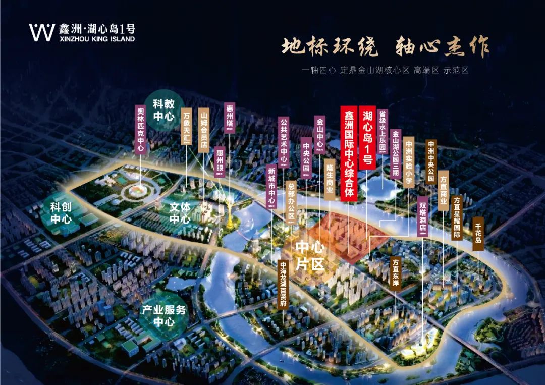 鑫洲·湖心島1號(hào)位于惠州城市之心——金山新城核心板塊湖心島內(nèi)。