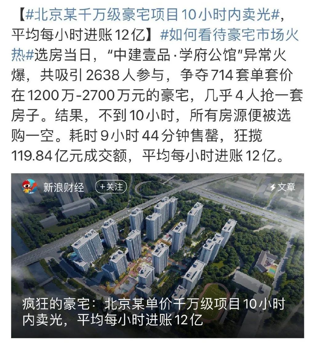 7月,北京某千萬(wàn)級(jí)豪宅714套10小時(shí)售罄登上熱搜;上海的豪宅市場(chǎng)也在持續(xù)回溫,數(shù)據(jù)顯示,6月初每天就有約3.7套總價(jià)3000萬(wàn)以上的豪宅成交;再加上近期刷爆地產(chǎn)圈的深圳招商璽,已經(jīng)是繼海德園之后第二個(gè)“日光盤”的豪宅項(xiàng)目……