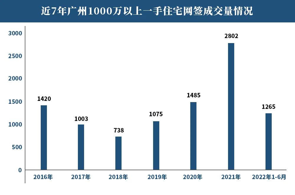△近7年廣州千萬(wàn)以上一手住宅網(wǎng)簽成交量