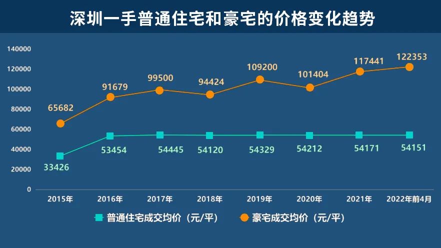 △深圳一手普通住宅和豪宅價(jià)格變化趨勢(shì)
