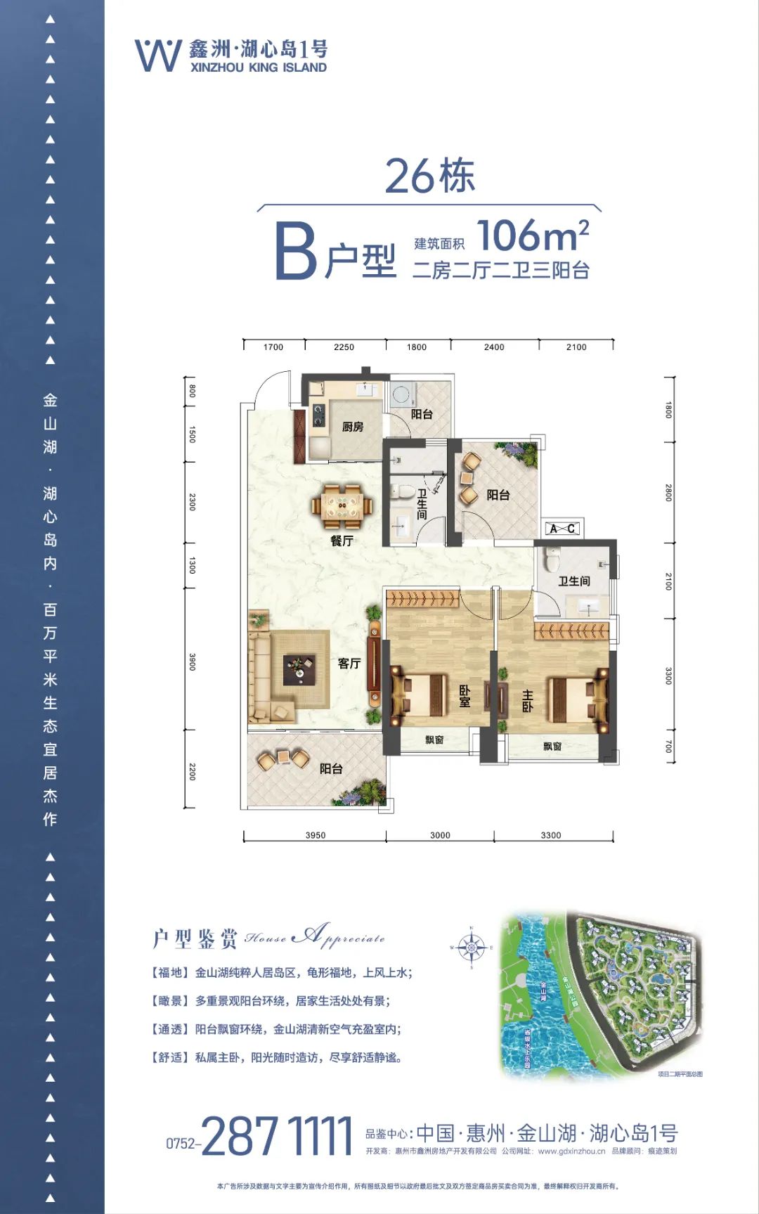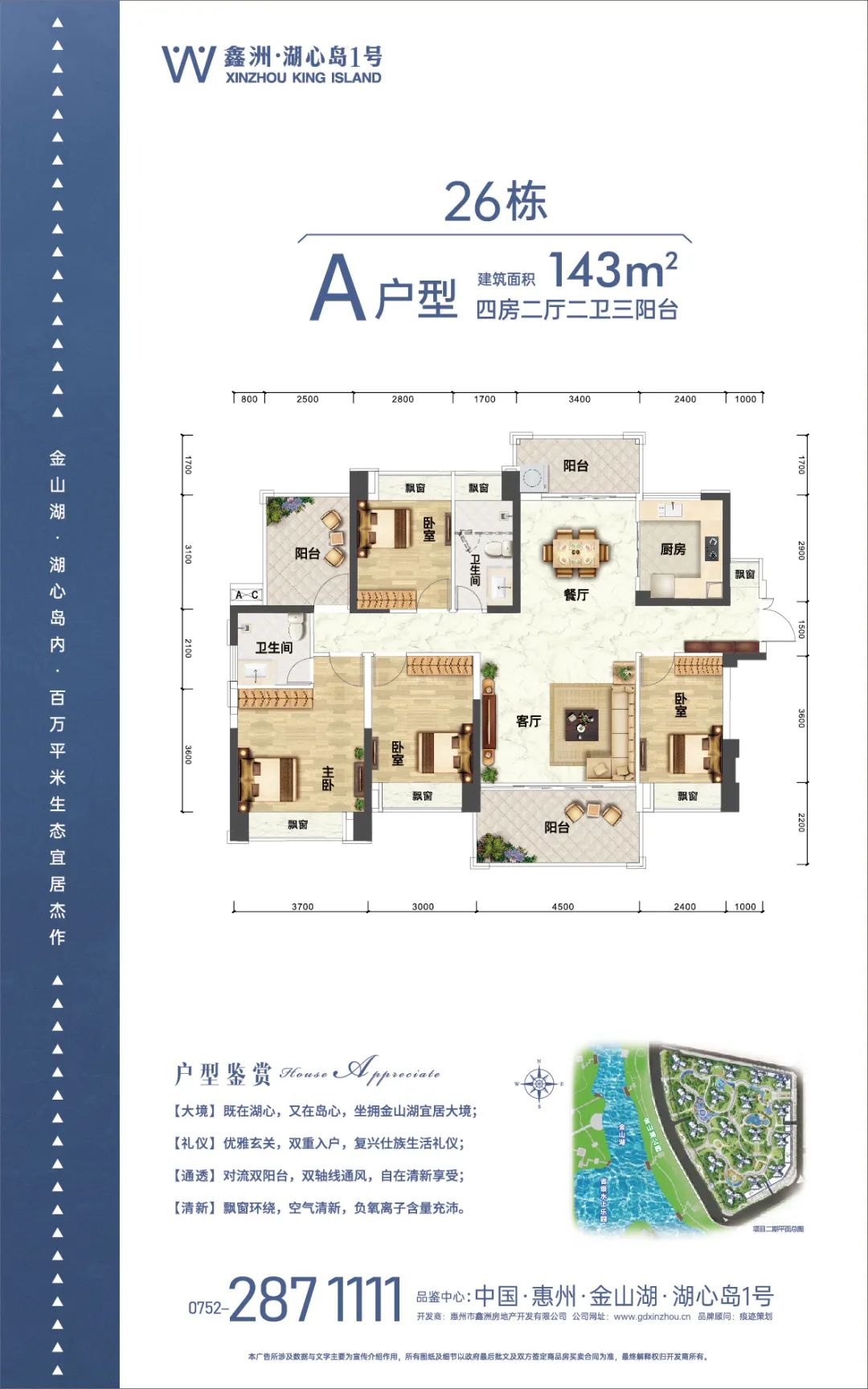 本次鑫洲湖心島1號二期推出的戶型皆以改善戶型為主,106平米、143平米、以及170平米大平層,純南向,方正實用。