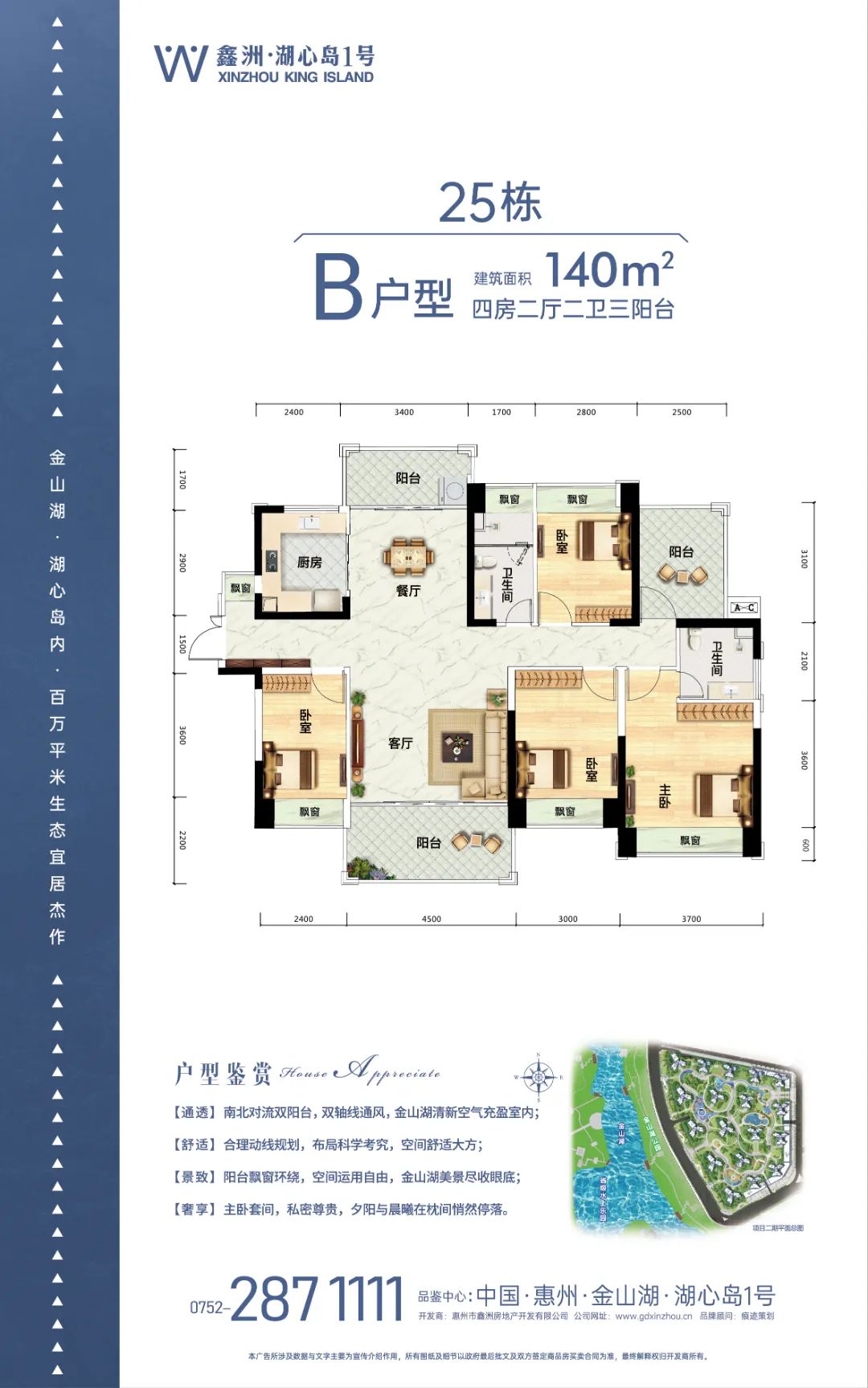 最后是金山湖珍藏版170平米大平層,6.9米超長湖景景觀面,雙陽臺對流設計,四面寬望湖。
